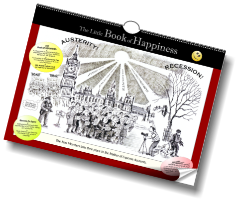 Come and enjoy a unique work of satirical political art conceived by Stockport writer Michael Bond in 2010 and created with the help of several British artists. Welcome to the Little Book of Happiness, a small book about a very big idea.